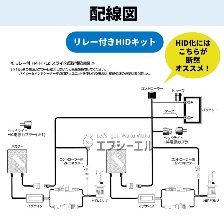 【明るさ重視】 55W H4 Hi/Lo リレー付き リレーレス HIDキット 6000K 8000K ヘッドライト ハイビーム ロービーム バルブ バラスト 車検対応 1年保証