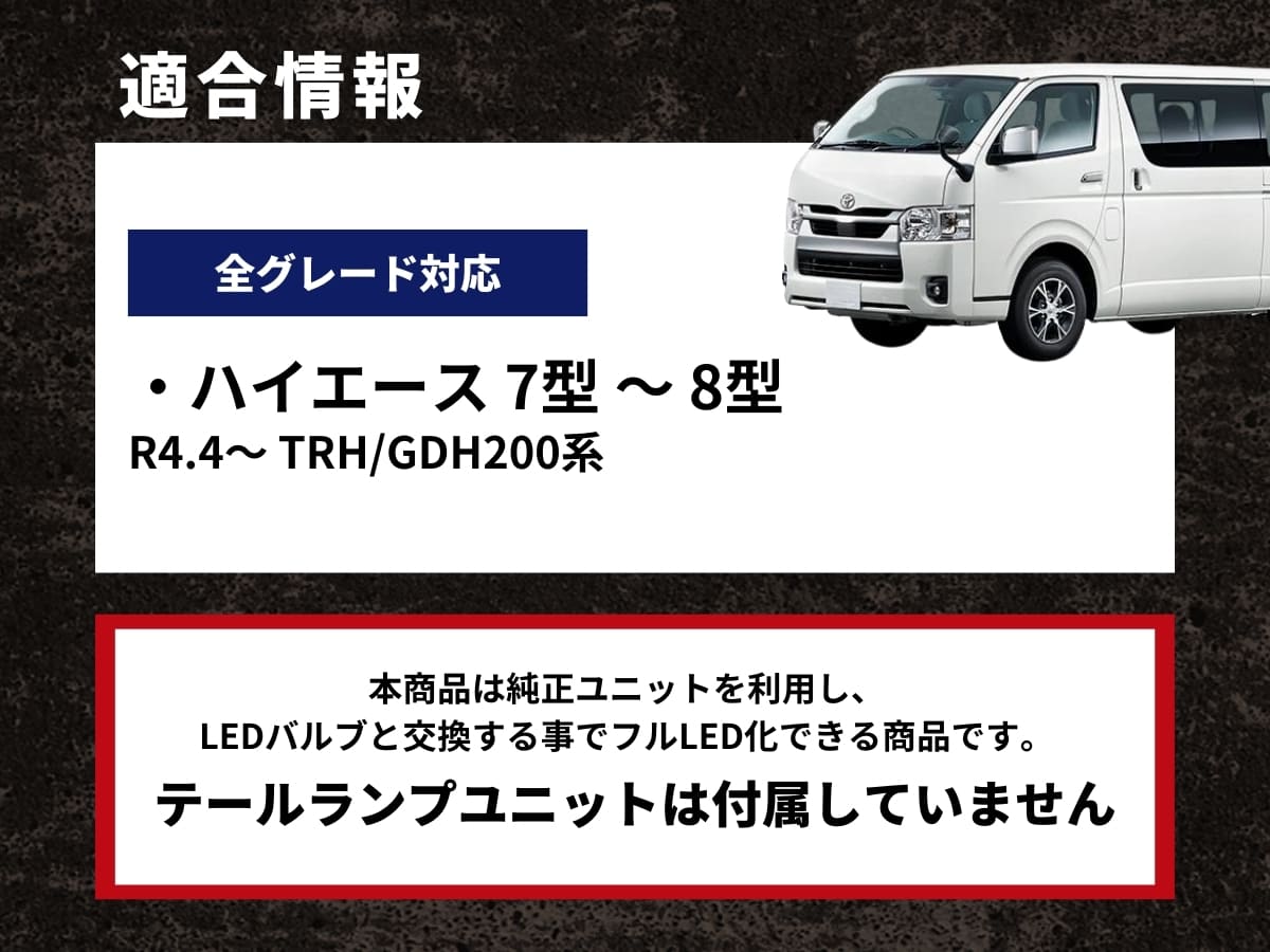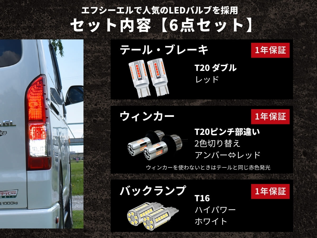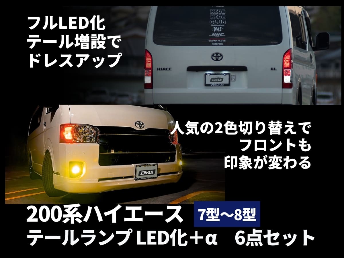 ハイエース 200系 新型 7型 8型 テールランプ フルLED化+α 6点セット リア フォグランプ L1B バックランプ T16 ウィンカー ポジション T20 ピンチ部違い ホワイト T10
