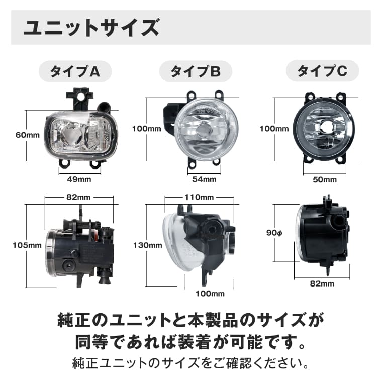 ■下記に該当する車両へは装着できません。 ・24V車/輸入車 ・純正フォグランプユニット装着以外の車両 ■ハロゲン色のみ、下記は、車両側の供給電圧不足によりちらつきや減光が発生する場合があります。商品不具合ではございませんので、予めご了承ください。 ・日産車のサブバッテリー搭載車 (セレナ・エクストレイルなど) ・リチウムイオンのサブバッテリー搭載車(ekクロススペースなど) 本製品はあらゆるお車に取付られるように設計された汎用品で、車種別の専用設計ではございません。最終的にお取付の可否につきましては、お客様ご自身でご判断いただきますようお願い致します。 把握している車両について随時、適合表の注意事項に記載しております。ご注文前に適合表をご確認ください。 ■取り付け時の注意点 ライトを交換される際は、光軸が適切な高さになるよう調整を行う必要がございます。 点灯色によってカットラインが異なりますので、下記のカラーに合わせて光軸調整してください。 ・ホワイト×イエロー:ホワイト ・ホワイト×ライムイエロー:ホワイト ・ホワイト×フロスティブルー:ホワイト ・イエロー×ライムイエロー:イエロー ・イエロー×フロスティブルー:イエロー ・ハロゲン×イエロー:ハロゲン ・ホワイト×アンバー:ホワイト ・取付けの際、バルブを回しすぎないようご注意ください。 ・作業スペースが狭い場合などは、バンパーを外しての作業となる場合もございます。 ・T20のトルクスネジが使用されている場合もございます。その場合は、お客さまにて工具をご準備ください。 ・フォグランプ未装着車は本商品のみでは装着不可です。予めトヨタ純正のLEDフォグランプユニットをご用意くださいませ。 ・トヨタ/レクサス純正バイカラーLEDフォグランプ装着車、は全車で適合不可となります。 ・ヒートセンサーの機能により、一定温度を超えると出力を押さえ発熱量を下げるためLEDが暗くなる場合がございます。 ■車検について ・ライムイエローは車検基準を満たす黄色ですが、検査官の判断により不適合となる場合がございます。その場合は、ホワイト、もしくはイエローに切り替えてください。 ・フロスティブルーは車検非対応です。検査時はホワイト or イエローに切り替えてください ・アンバー:車検非対応です。検査時はホワイトに切り替えてください。 ※本製品にはメモリー機能がついており、最後に点灯していた色がそのまま次回点灯時も発光します。車検を受ける際は、必ずホワイトやイエローにしてから点灯をオフにしてください。 |