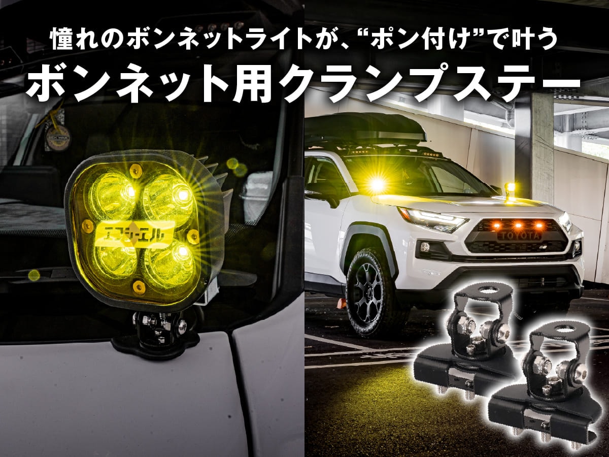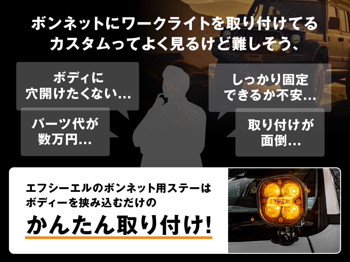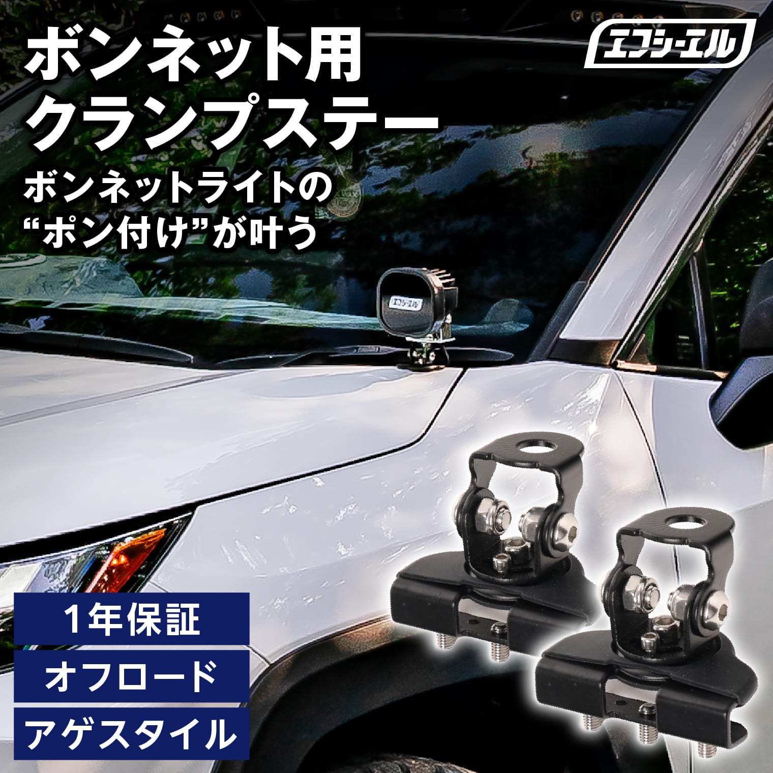 11/5-11/9は20%OFF/ボンネット用クランプステー 取り付けステー ボンネットステー ワークライトブラケット スタンド 穴あけ不要 取付簡単 作業灯 前照灯 補助灯 挟み込みタイプ 汎用 2個 【まとめ割】