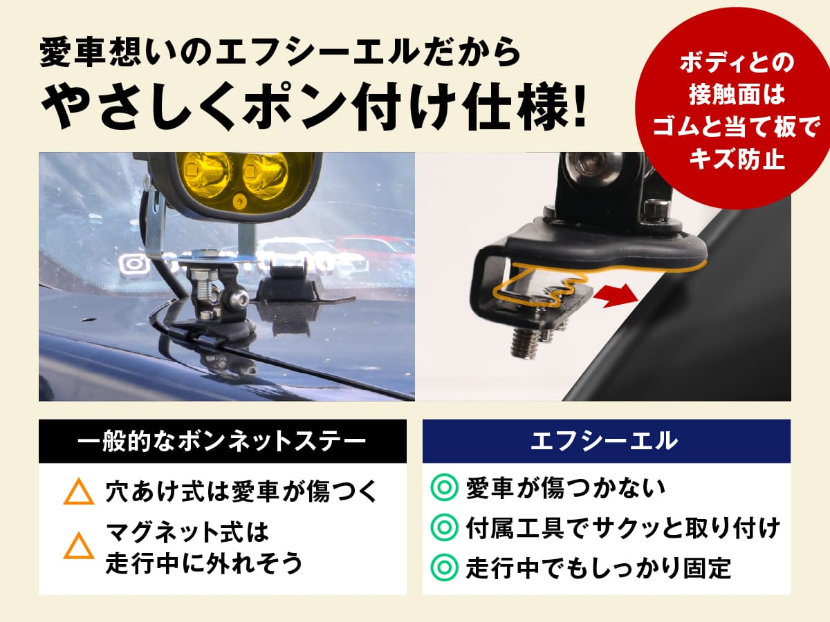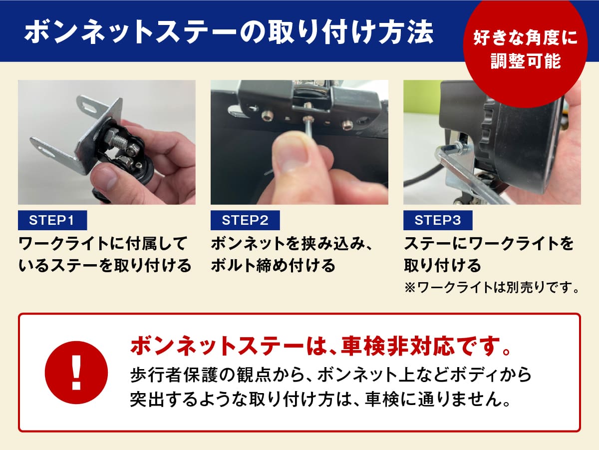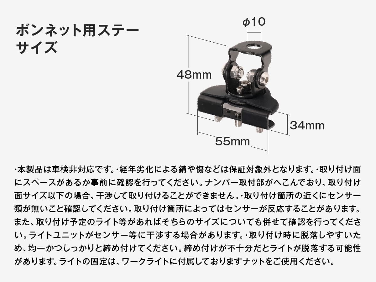 11/5-11/9は20%OFF/ボンネット用クランプステー 取り付けステー ボンネットステー ワークライトブラケット スタンド 穴あけ不要 取付簡単 作業灯 前照灯 補助灯 挟み込みタイプ 汎用 2個 【まとめ割】