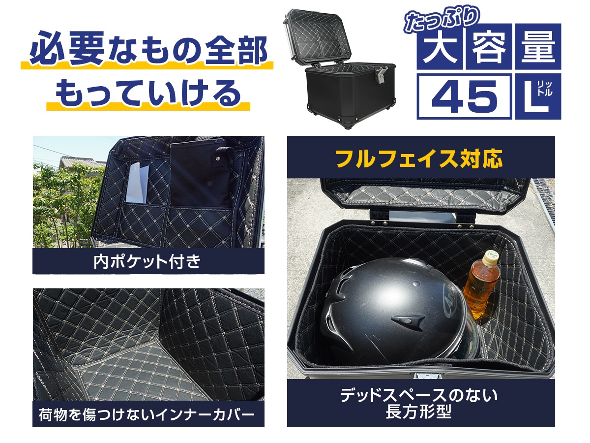 【新登場】バイク リアボックス トップケース 大容量 45l キーロック 取付ベース ステー 軽量 ABS製 パニアケース バイクケース フルフェイス対応