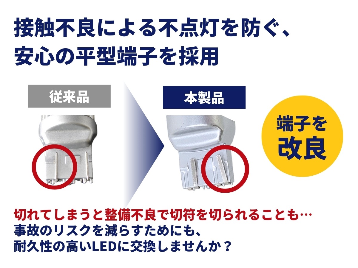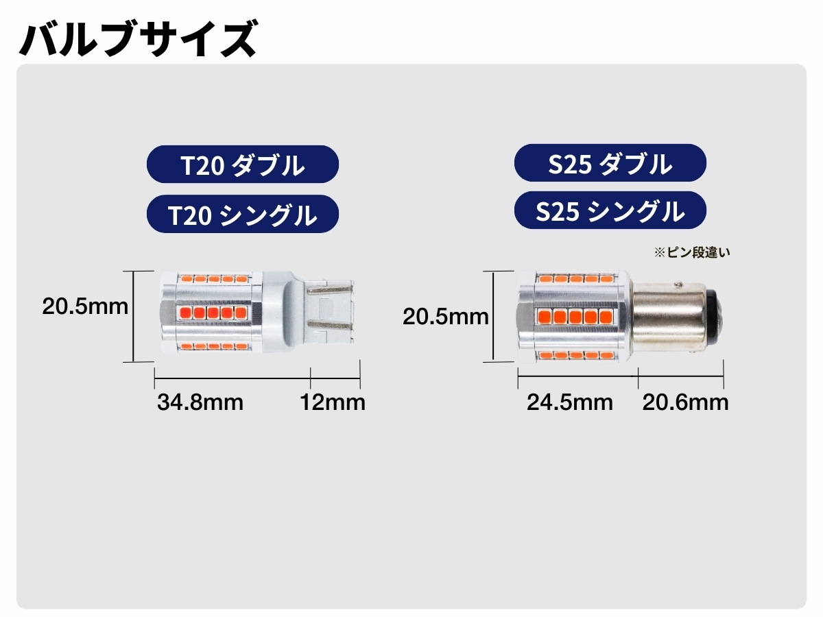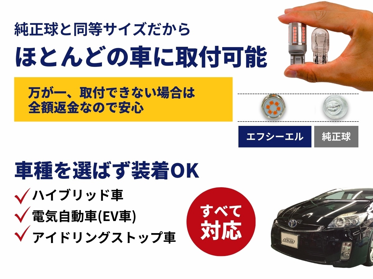 | ■24V車への装着はできません。 長く使用いただけるように、細部にまでこだわった設計のため、12V/24V兼用品での販売はしていません。 ■純正バルブからLEDバルブに交換した場合、消費電力が異なるため、車両によっては球切れ警告灯などのエラー表示が出る場合がございます。 ■輸入車は球切れ警告灯が点灯する場合があるため、お取り付けいただけません。 |
