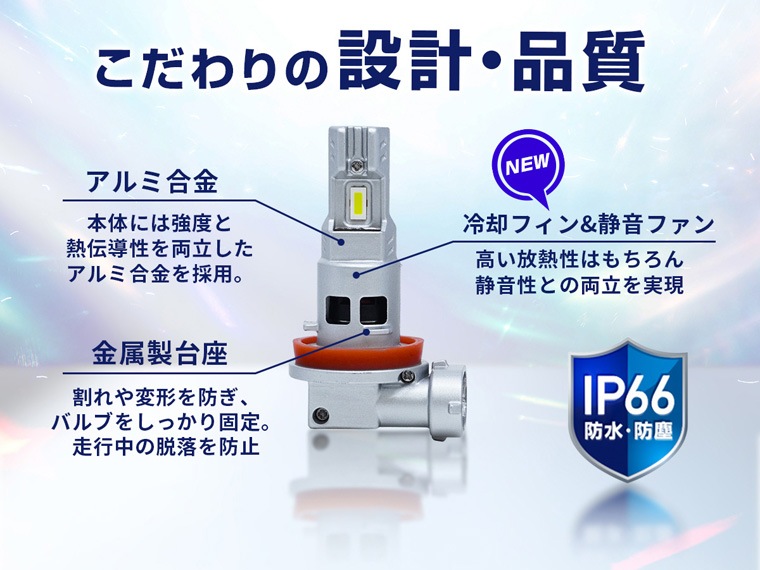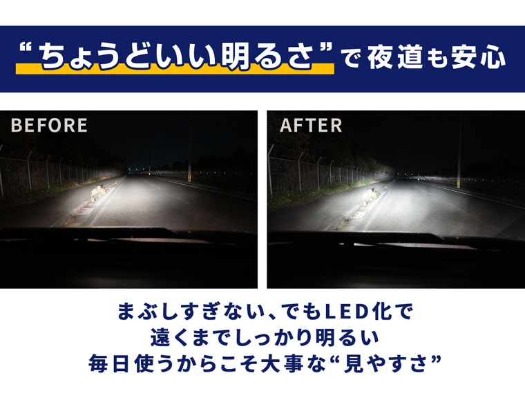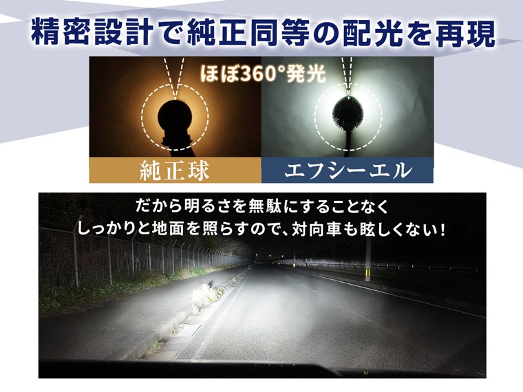 【明るさ、価格、かんたん取付】 エフシーエルの「ちょうどいい」を形にした万能LEDバルブ。従来のバルブからリニューアルし、明るさは約1.5倍にアップ。 配光設計にこだわり、路面をしっかりと照らしながらも対向車への眩しさを抑えた信頼の光を届けます。 初めてのカスタムでも迷わない、夜道や雨の日の運転に心強いLEDバルブです。 【手軽にLED化】 複雑な配線加工や追加パーツは一切不要。 バルブを入れ替えるだけのシンプルな工程で、初めてのカスタムでも迷わずスムーズに取り付けが完了します。 【多彩な車種とニーズに応える汎用性】 ロービーム、ハイビーム、フォグランプ、コーナリングランプに対応。 コンパクト設計によりハイブリッド車、電気自動車(EV)、アイドリングストップ車といった最新の12V車をはじめとする幅広い車種へ取り付けが可能です。 【選べるカラー展開】 カラー展開はホワイト、イエロー、ライムイエローの王道3色をラインナップしました。 愛車の雰囲気や走行シーンに合わせて、最適なカラーをお選びいただけます。 見た目の洗練さと実用的な視界の良さを両立し、あなたの愛車に最適な光を提供します。 |