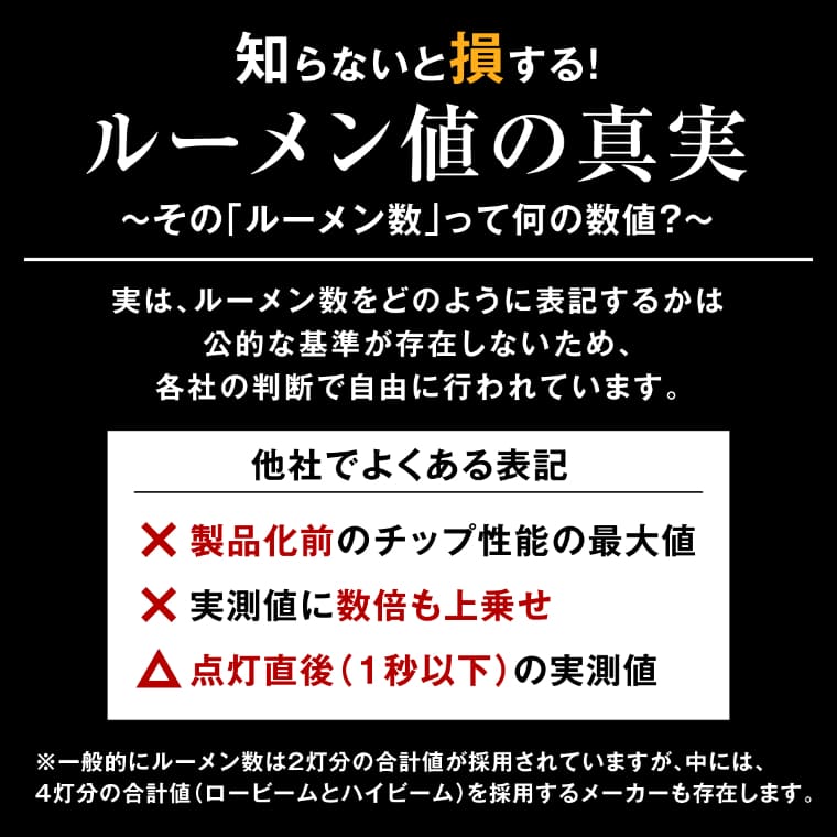 | ・12V車/輸入車への装着はできません。 ・交換後は必ず光軸調整を行ってください。ライトを交換される際は、光軸が適切な高さになるよう調整を行う必要がございます。 ・ 直流車専用設計です。交流車は使用できません。 ・付属の予備防水ゴムについて 本製品は防水性向上のため防水ゴムを装着済みですが、まれに固定後に切れてしまうことがあります。 その際は付属の予備ゴムに交換してください。 ※購入時期によっては付属しない場合があります。 |
